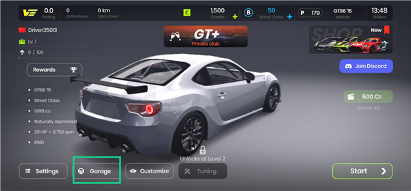 1、进入游戏中,点击【Garage】。