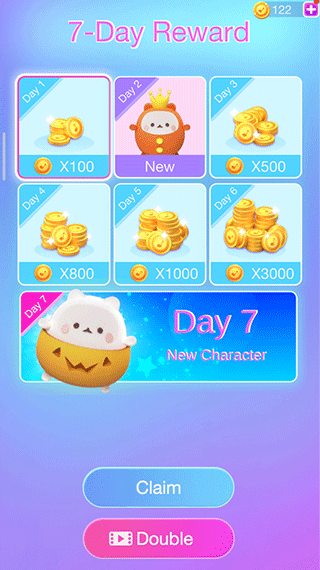 7、七天签到活动,每天可以领取不同的奖励。
