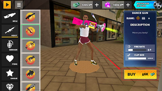 4、挑选你需要的武器,点击【BUY】购买即可,由于是破解版,所以无需担心购买问题;