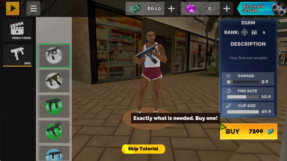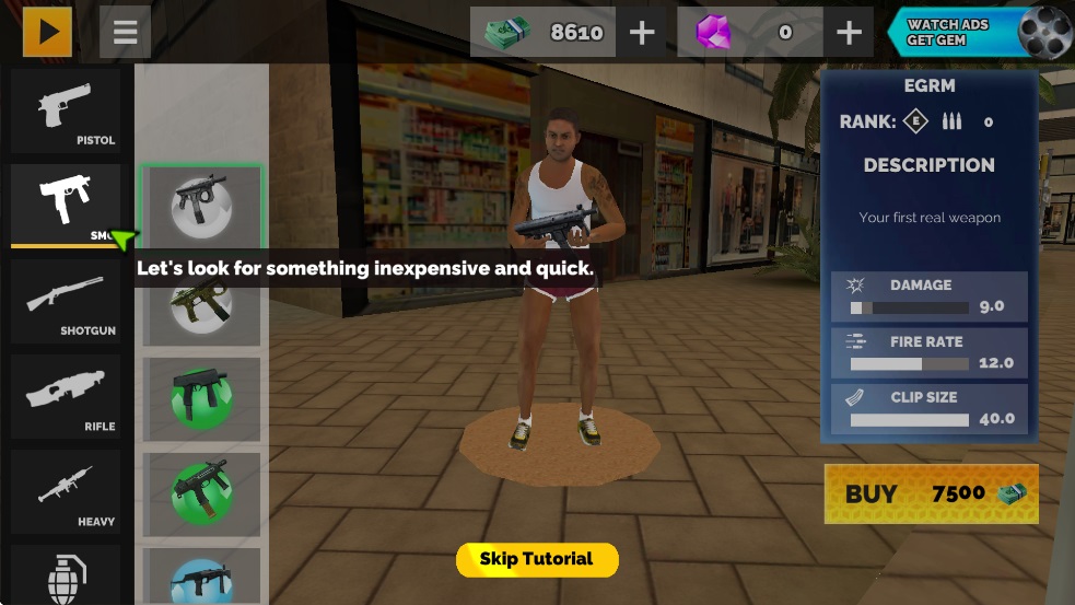 2、开局没有足够的钱只能找点便宜又好用的武器,点击购买