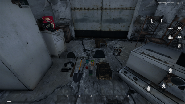 玩家进入游戏后会出生在一个封闭的集装箱内,通过滑动屏幕左侧即可控制角色移动,建议先将集装箱里的物品拾取起来,用于基础防身和生存。