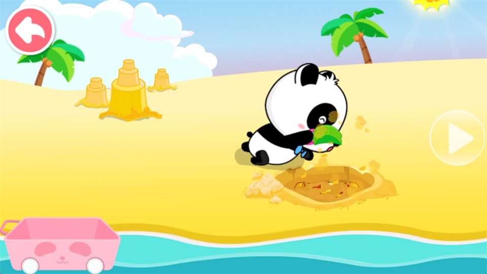 游戏核心玩法就是“挖一挖”。孩子可以使用铲子等工具在沙子里挖掘,挖开后会发现贝壳、宝箱、玩具或其他惊喜物品。