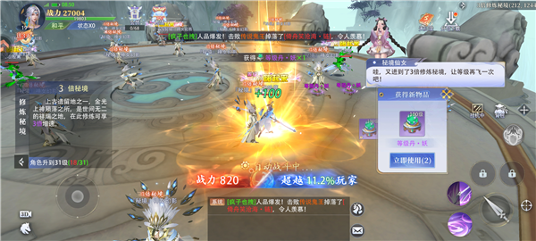 7、玩家还可以在三倍秘境通过打怪掉落的经验丹迅速升级,可以实现一丹一级的效果。