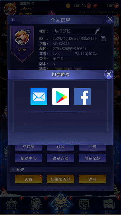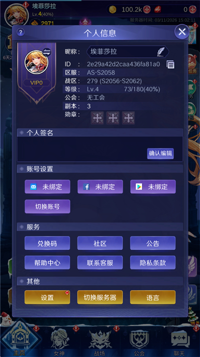 1、首先你的游戏账号需要与你的社交账号绑定,用新设备下载ldle Angels,打开游戏,找到自己的服务器,登录。