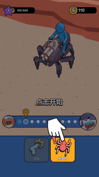 1、开始游戏,点击屏幕,控制好机甲射击人类。