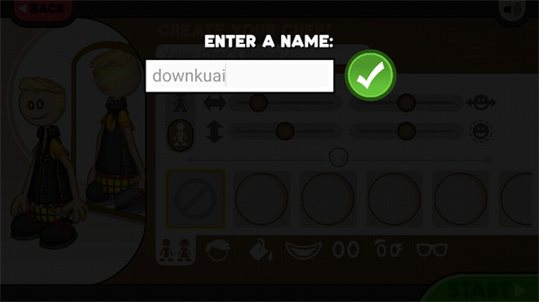 2、选择喜欢的形象后,对角色的体态身高等内容进行自定义的选择,最后个角色取一个好听的名字点击“开始”。