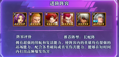 阵容评价:合理搭配的推荐阵容,能在战局中打出高额的持续伤害,也有较强的单体斩杀能力,是过渡到高阶阵容的优质选择。