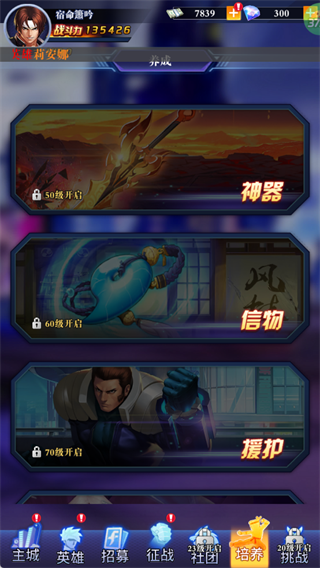 等级达到50、60、70级等可分别开启神器、信物、援护系统,这些系统能大幅提升英雄战力,需逐步解锁培养。