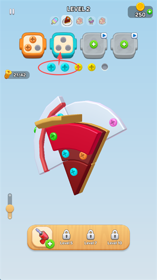 2、三个黄色螺丝收集完成后,会出现另一个颜色的螺丝放置处。