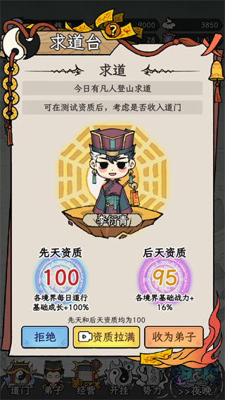 2、随缘招徒,你可能捡到先天道体的天才,也可能招来只会干饭的“关系户”。