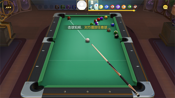 3、你可以在大师之路模式多了解台球的游戏规则,不然犯规对方就会有任意摆球的机会。