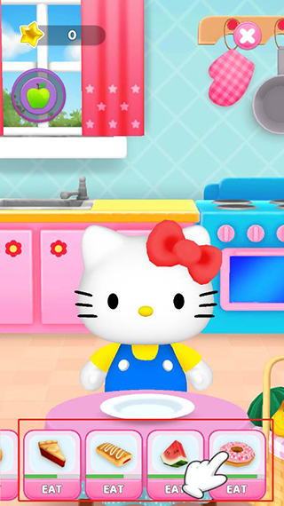 和 Hello Kitty 一起玩会说话的迷你游戏,比如打球、照料花、洗碗、说话 Hello Kitty 最喜欢的迷你游戏、烘焙等等。