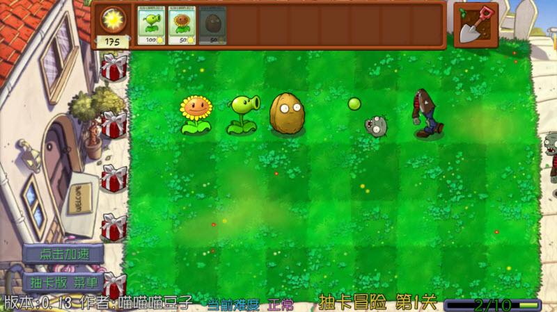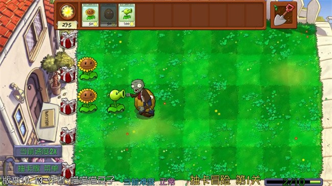 植物大战僵尸抽卡重置版内置菜单版是一款由B站UP主制作的一款PVZ同人类型游戏,也是植物大战僵尸的抽卡重置版。在这款游戏之中你将会在植物大战僵尸的原版基础上,体验到全新的抽卡玩法,你可以在每一次的冒险关卡通过之后进行抽卡,不同的卡牌获取的数量也完全的不同,想办法根据关卡内部的怪物特性来合理的选择你的卡片,更好的抵御那些僵尸的进攻。同时无论是植物还是僵尸都进行了重新设计,每一种都有独特的能力,大大增强了游戏可玩性。