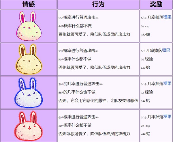 森林兔子是玩家在OMORI中文版最先会遇到的敌人之一,可以在广阔森林和风车森林中找到。一个名为森林兔子的颠倒变体?也可以在广阔森林中找到。像大多数敌人一样,它会根据其情绪采取不同的行动。战斗公式:攻击:默认伤害。可爱一点:攻击力降低一级。悲伤的眼睛:增加一层悲伤。