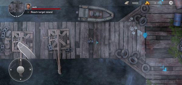 1、在本站下载安装好亡灵丧尸杀手汉化版后,打开进入游戏,左下角按钮可以控制角色自由移动。