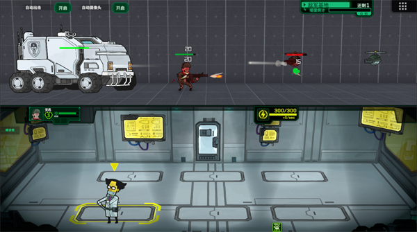 士兵会自动作战,玩家需关注血量与压力值。当士兵压力过高时,及时将其撤回医疗车,同时用火炮支援清理密集敌人,减轻前线压力。