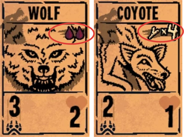野兽牌共有2种上阵成本——「血」和「骨币」。通常情况下,献祭1只生物可获得1点血和1块骨币(被击杀也可以获得骨币)。