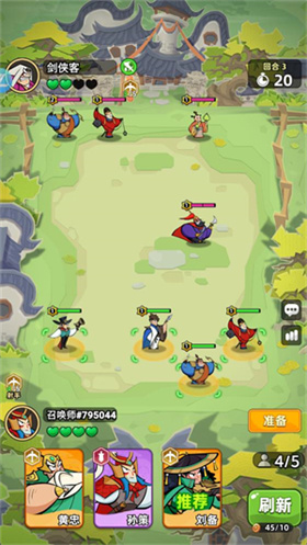 2、点击准备按钮可以战斗,战斗会自动进行,当击败所有敌人后可以获得铜币奖励,消耗铜币可以刷新牌库获得新的英雄。