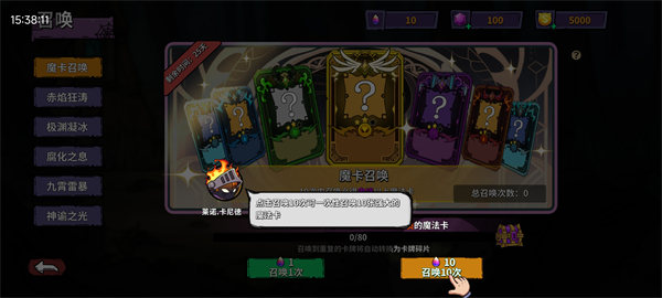 1、抽卡优先级:前期优先攒道具抽「魔卡召唤」,十连保底能拿到强力卡牌。