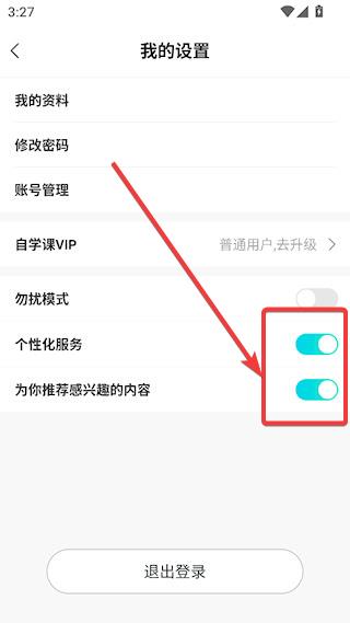 3、找到【个性化服务】【为你推荐感兴趣的内容】