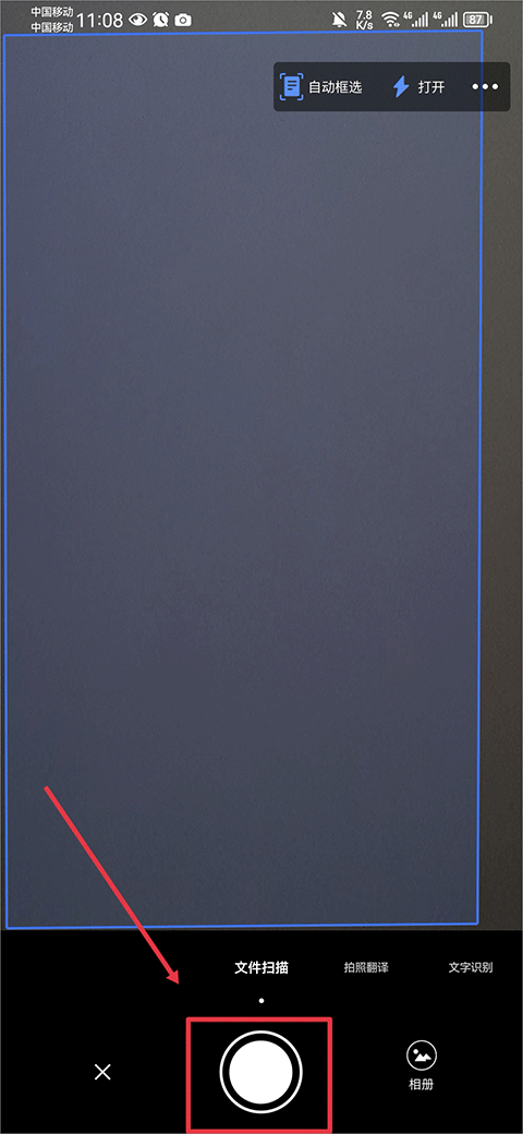 2、进入后将相机对准文件后,点击按钮开始拍照