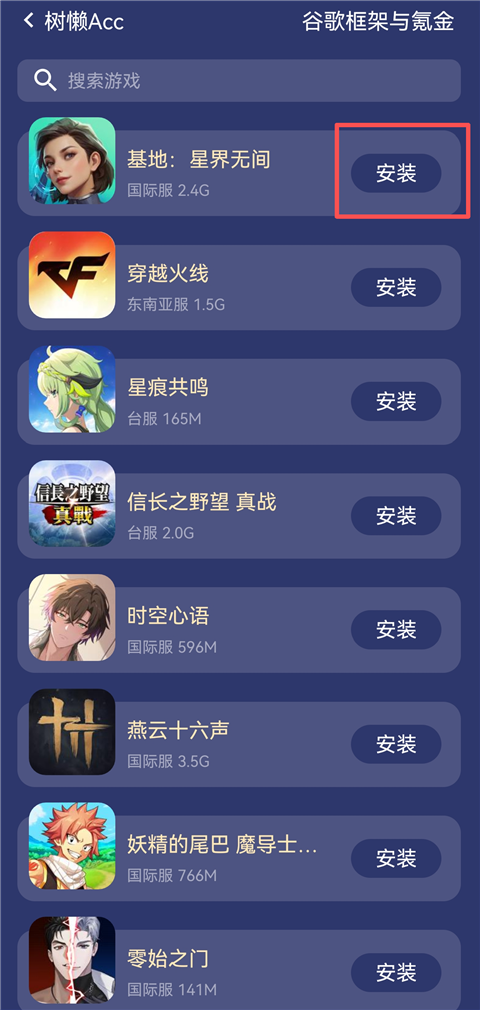 2、选择想玩的游戏,点击【安装】。