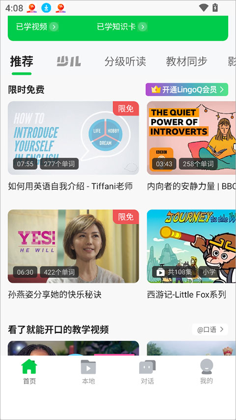 【本地视频】如果找不到喜欢的视频内容,可将本地视频或网盘中的视频导入应用进行学习,满足更加个性化的学习需求。