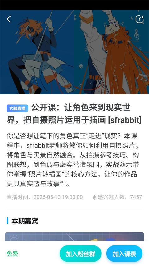 绘画大佬们的直播分享,传授行业知识和项目实战技巧,为画友带来实操层面的技能学习!