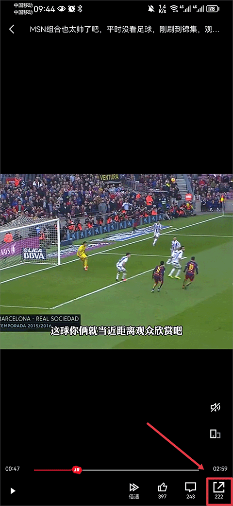2、进入到视频内容界面后,点击右下角的分享图标