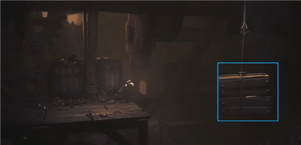 压力板门:将散落的木箱推至地面的压力感应板上,重量触发后可开启封闭的铁门。