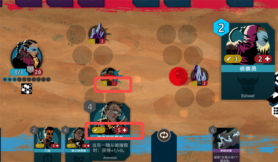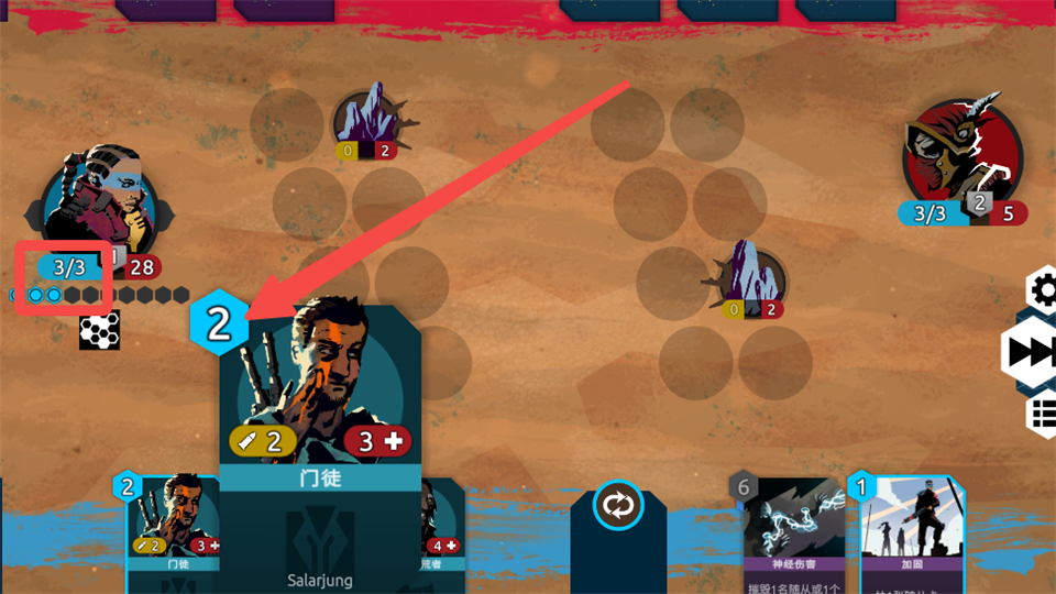 4、你可以看到随从具有两种数值:他们的攻击力在左边,生命值在右边,当随从的生命值降为0会被摧毁。