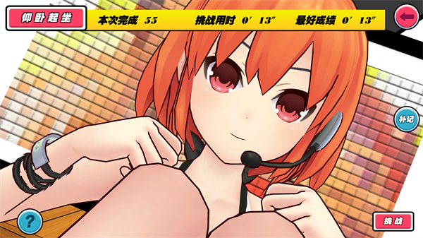 我的健身教练是一款以健身为主题的手游,在这款游戏中会有着各种二次元美少女陪你一起锻炼,在制定好训练计划之后,就能在重力感应的方式中根据提示完成仰卧起坐、俯卧撑、深蹲等多种健身动作,在运动期间,系统还会有训练记录,记录着你的卡路里消耗,获得的奖励可以用来解锁服装等元素。