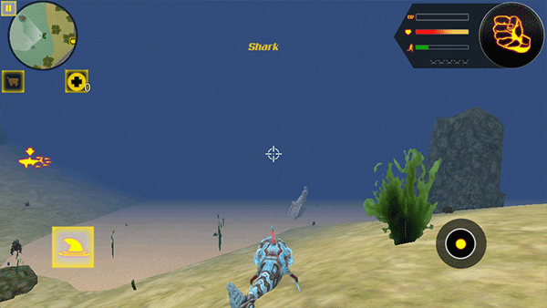 游戏核心亮点在于独特的双形态切换机制:陆地作战时,你将以全副武装的机器人身份冲锋陷阵,施展近战格斗与远程火力;一旦跃入水中,立即变身敏捷凶悍的机械鲨鱼,利用水流优势发动迅猛突袭。两种形态不仅外观迥异,更配备专属的操作逻辑与攻击方式,让每一场战斗都充满新鲜感与战术变化。