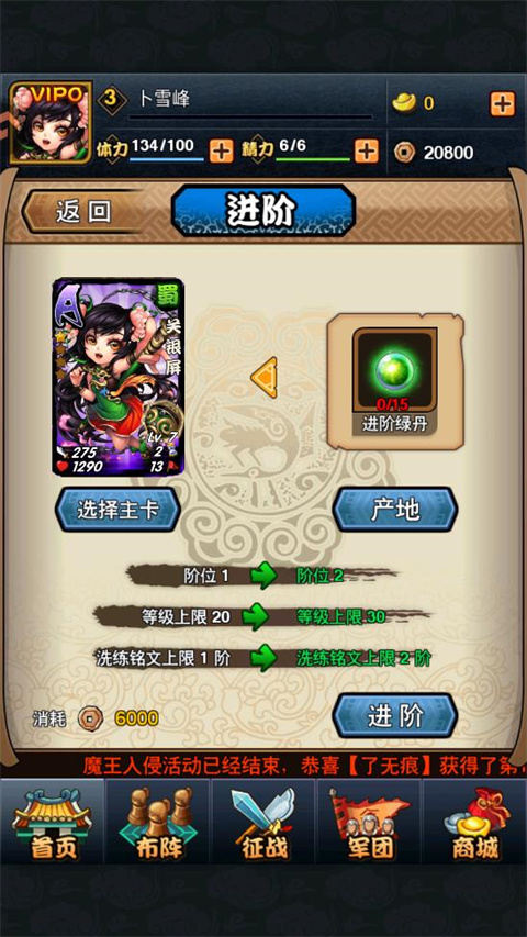 2、进阶需要消耗进阶丹,低级进阶丹可在商城购买,高级进阶丹可通过活动或神秘商店获得