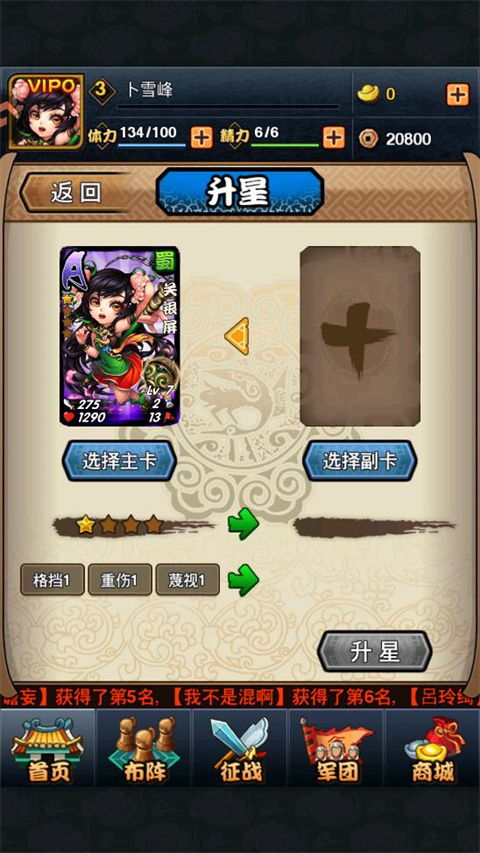 1、星级决定卡牌本身的技能等级,升星需要合并掉相同卡牌