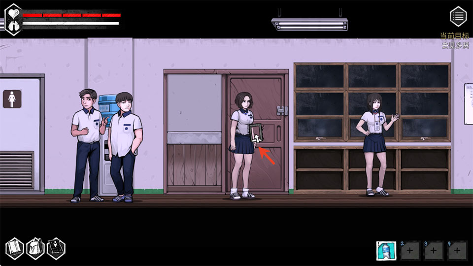 2、世华高中体育馆,前往学校,到教室2触发剧情,到教室1进入鬼窟,选第五,第三,第七门进入停尸房获得圣水(完美结局必需品)。
