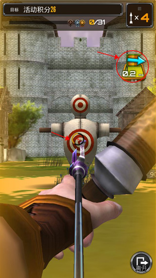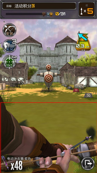1、通过简单的触摸控制,你需要在下面红色方框内来拉动弓箭,并进行瞄准射击。