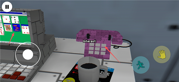3、操控角色接近书桌区域,将屏幕中央的瞄准光标对准桌上的账单文件,随后点击手形图标以查看电器费用明细;
