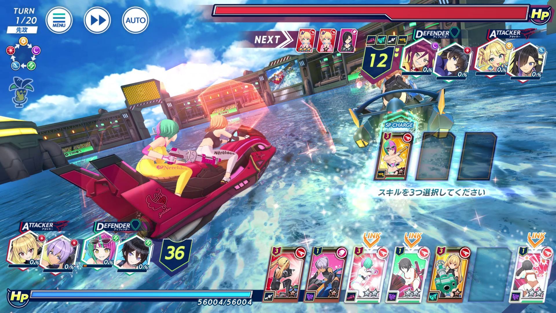 7、选好3张技能卡以后实行攻击指令,选择乘坐在相同机器上的海豚技能就会发动LINK效果,获得更高的使用性能,