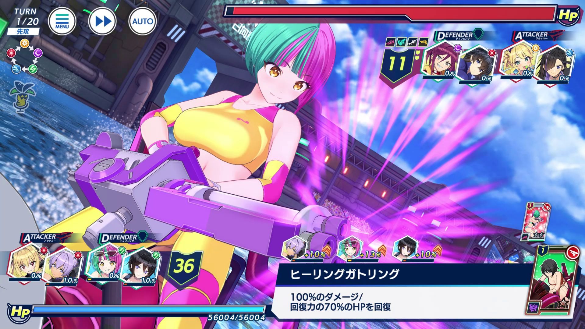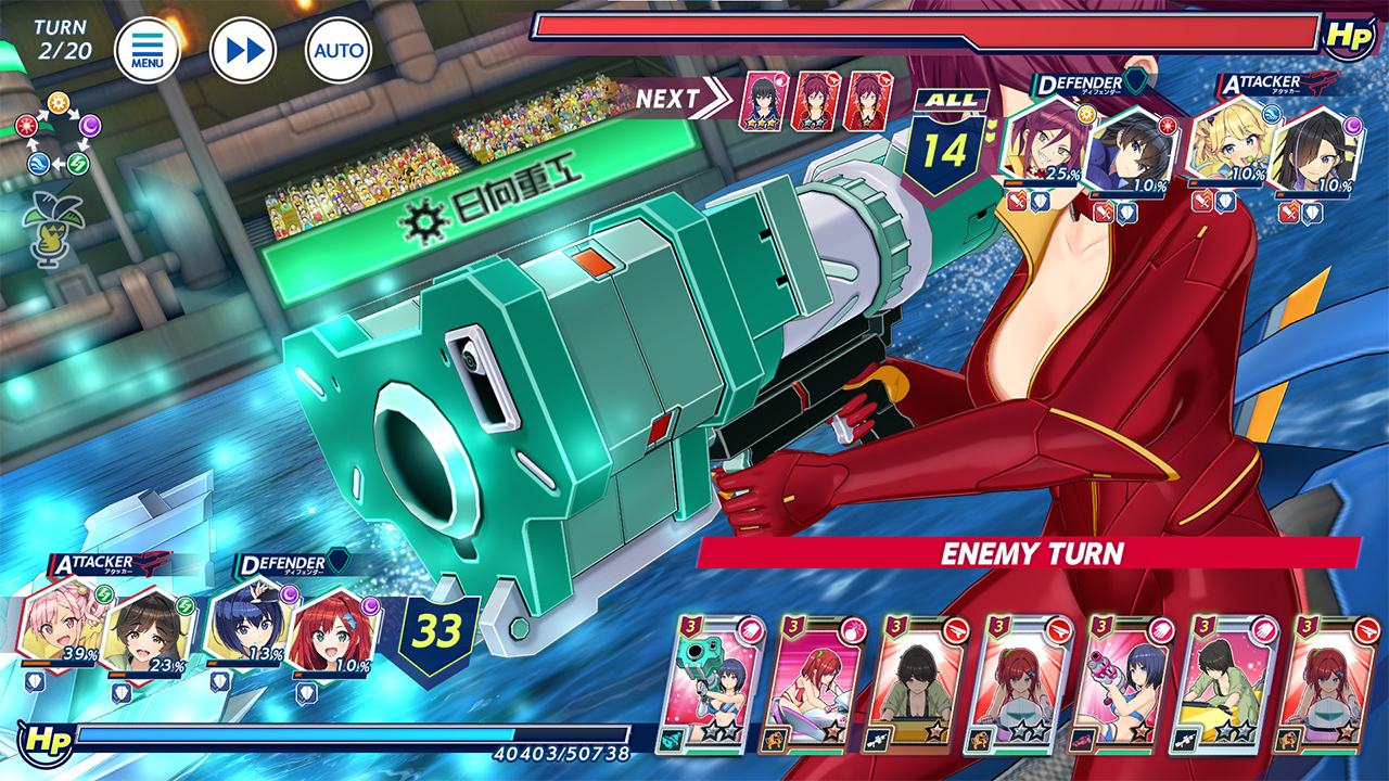 6、想要赢得比赛不只要向对手的HP造成足够的伤害,破坏她们的护甲值(シールド)也是非常重要的一点。护甲值削减到一定程度后就会进入毫无防备的BREAK状态,可以更加追击对手,