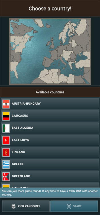 1、下载安装后启动游戏,首先需从多个参战国中选择一方势力开启征程。