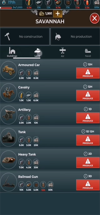 1、玩家需全面掌控国家运转,涵盖资源采集、工厂建设、装备生产、兵员征募及商贸拓展,打造坚不可摧的战时经济体。