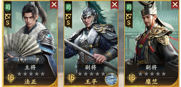 1、基础开荒队:法正(主将)+ 王平 + 糜竺
