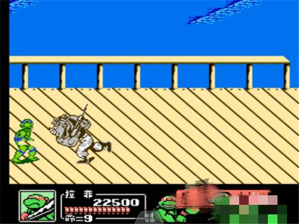 过关技巧:可以使用第二个忍者龟的铁头功不断攻击boss,控制技能比较好可以无损打败boss。