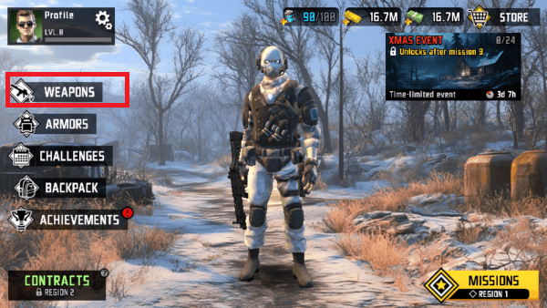下载安装游戏后进入,点击左边的武器图标的一栏进入。