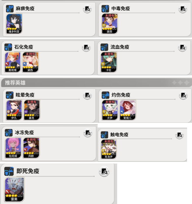 各类异常效果免疫在应对讨伐战、成长副本都是必不可少的功能角色,建议保留,不要用作给其他角色强化升级的素材。