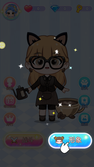 1、开始游戏,选择形象按键,进行装扮设计。