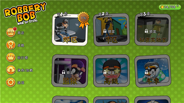 1、逃过保安、居民和熟睡的斗牛犬的双眼,获得每个关卡中的战利品。