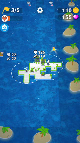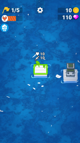 4、射击敌人收集更多的木筏,不断的扩大木筏,招募船员,在海上艰难生存。