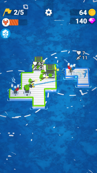 3、不断的扩大你的木筏面积,救起更多的幸存者,收集炮台,和其他的生还者展开对战。